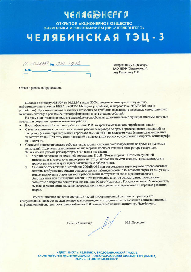 От ОАО «Челябэнерго», Челябинской ТЭЦ-3