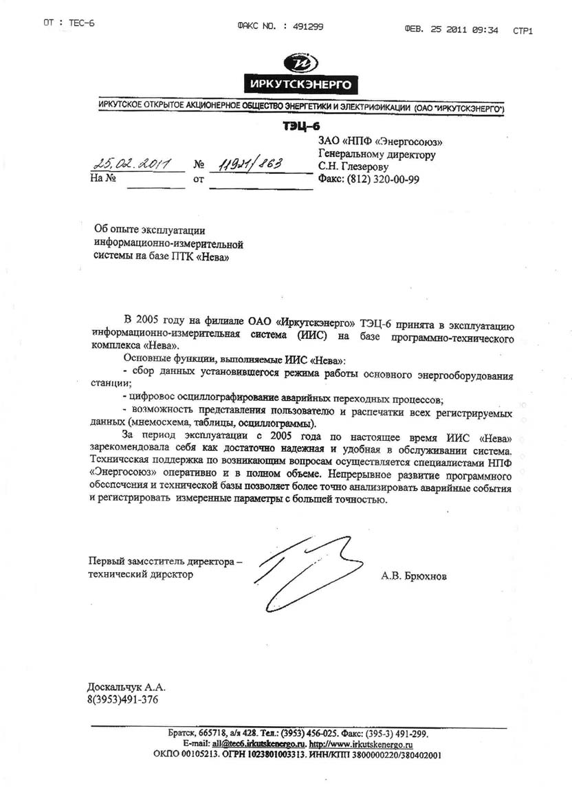 От ОАО «Иркутскэнерго»